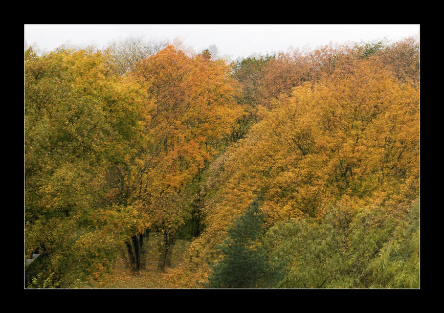 Bilderna är tagna från ett fönster på Södermalm, med utsikt över en park och en gata. Bildtitlar; Karen Hjort.